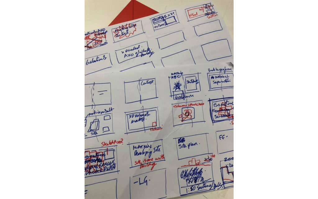 Storyboarding is more than just an organisational tool; it is a design method that helps structure ideas, refine spatial transitions, and choreograph architectural experiences. How does one drawing lead to the next? What sequence best conveys the evolution of the project? How do different scales—macro urban strategies, intermediate spatial configurations, and intimate material conditions—interconnect through a visual language? These are the questions driving our current mapping and drawing production phase.